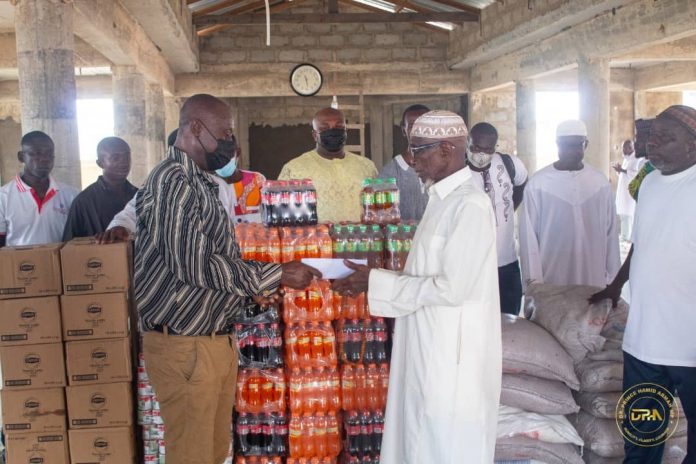 The items, which include thirty bags of sugar, thirty cartons of milk, thirty cartons of tea and fifty assorted cartons of soft drinks, were presented to representatives from the various mosques in the constituency in a short ceremony on Monday, April 12, 2020.