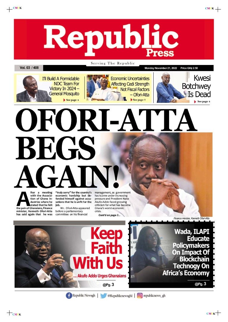 Main FeaturedNews Newspaper headlines: Monday 21st November, 2022 By Marani - November 21, 2022 0 385 FacebookTwitterPinterestWhatsAppLinkedin Getting your Trinity Audio player ready...
