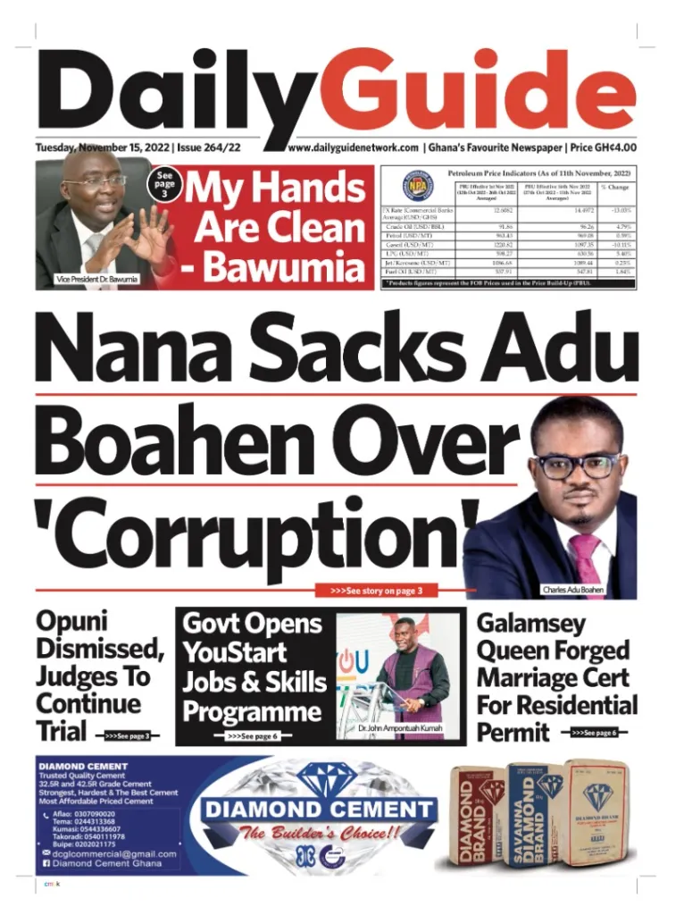 Main FeaturedNews Newspaper headlines: Tuesday 15th November, 2022 By Marani - November 15, 2022 0 414 FacebookTwitterPinterestWhatsAppLinkedin Getting your Trinity Audio player ready...