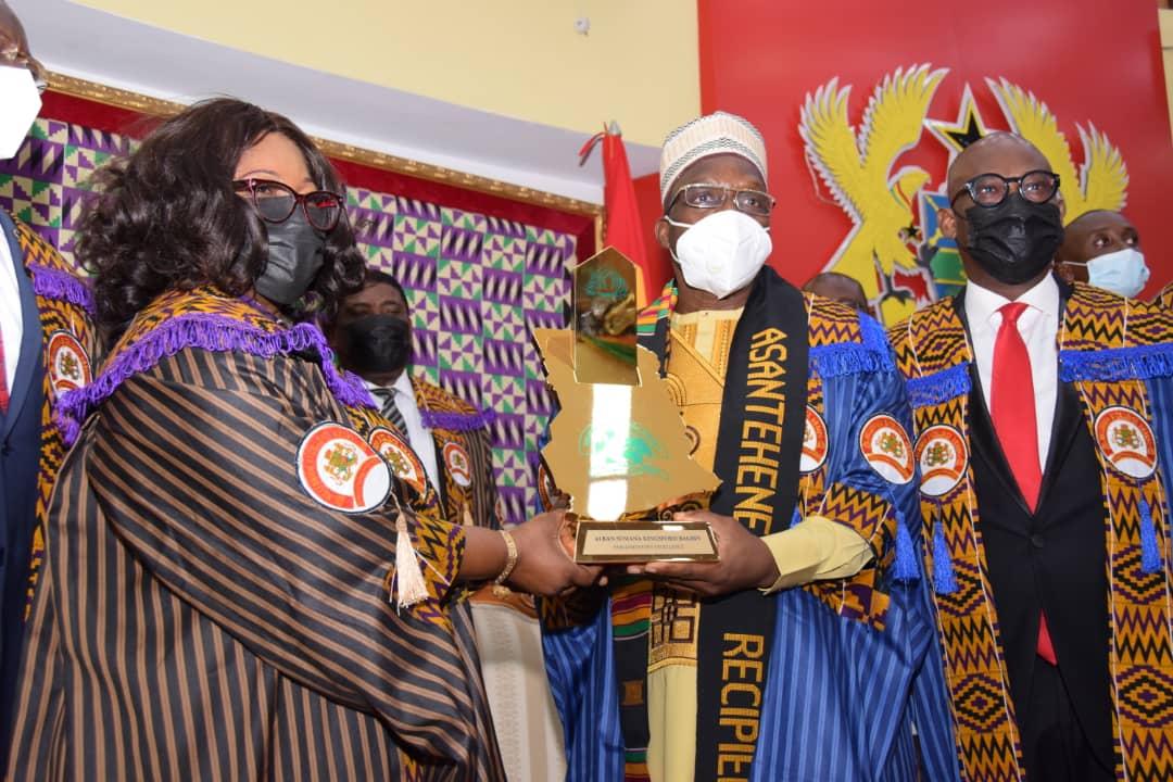 Speaker Bagbin was decorated with a sash and presented with a plaque in the shape of a map of Ghana, and honoured with a citation.